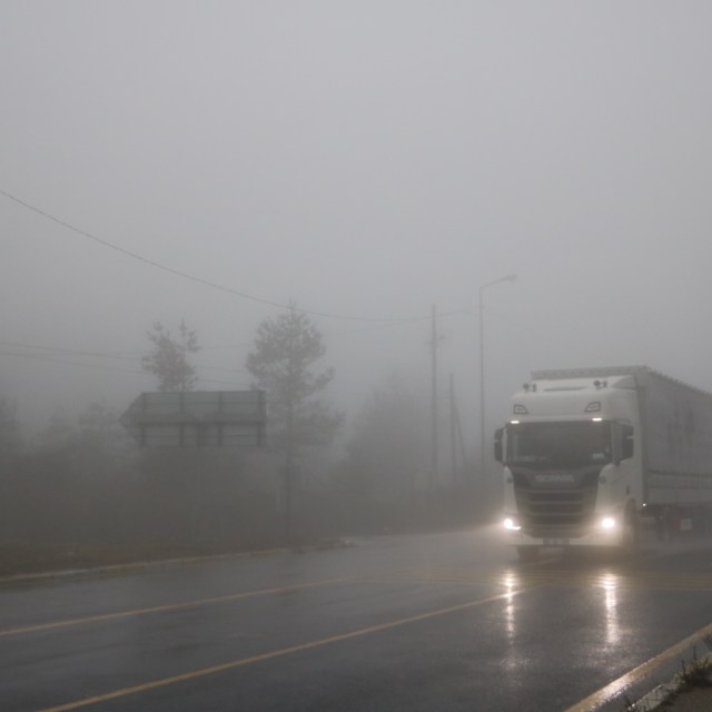 Bolu Dağı’nda sabahın erken saatlerinde yağmur etkili olurken, görüş mesafesi sis nedeniyle 20 metreye kadar düştü. Bu durum, sürücüler için tehlike oluşturdu.